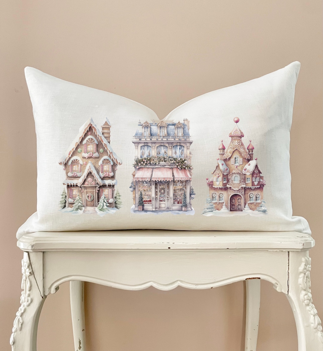 Pastel Gingerbread Houses Lumbar Christmas Pillow Cover, Shabby ...
