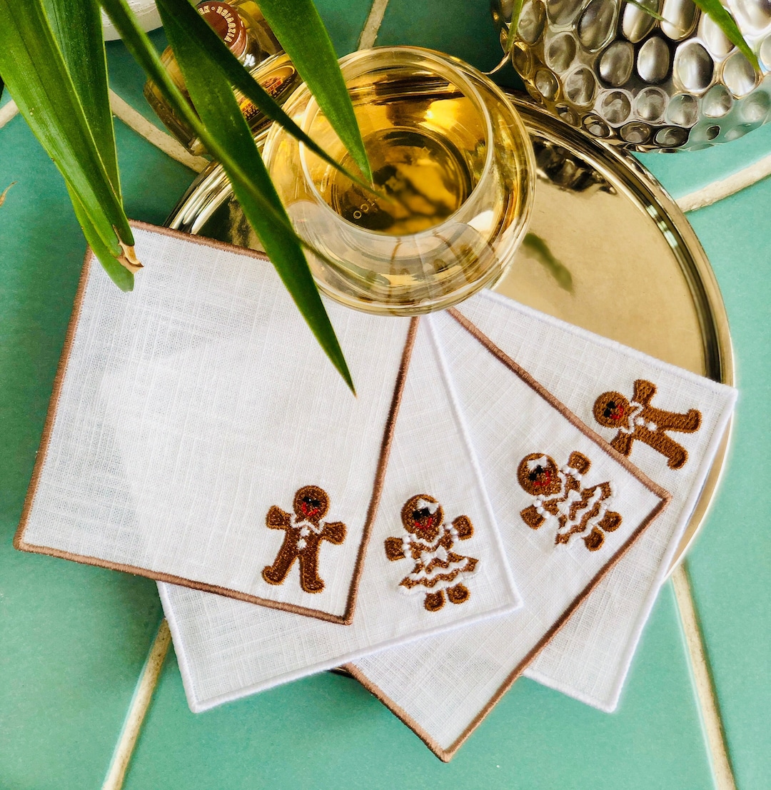 Embroidered Gingerbread Linen Cocktail Napkins - Set of 4 - Etsy