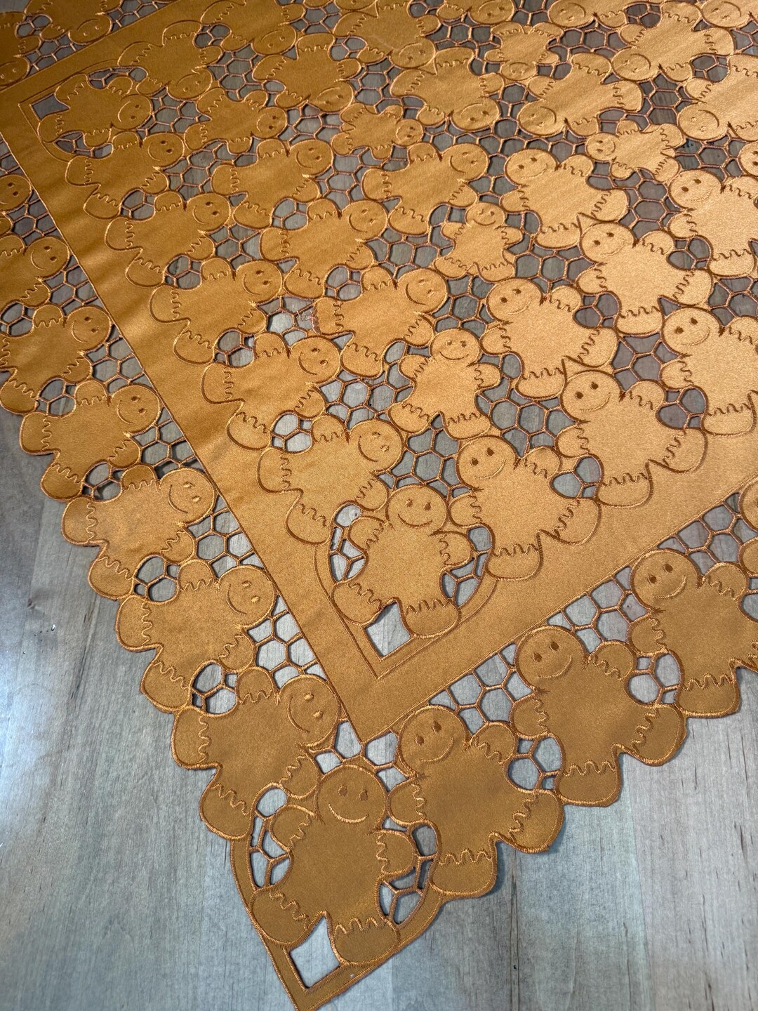 Gingerbread Cutout Table Linens – Holiday Table Runner & Square Topper ...