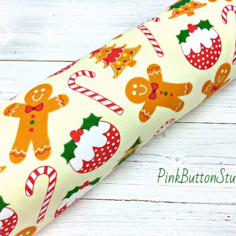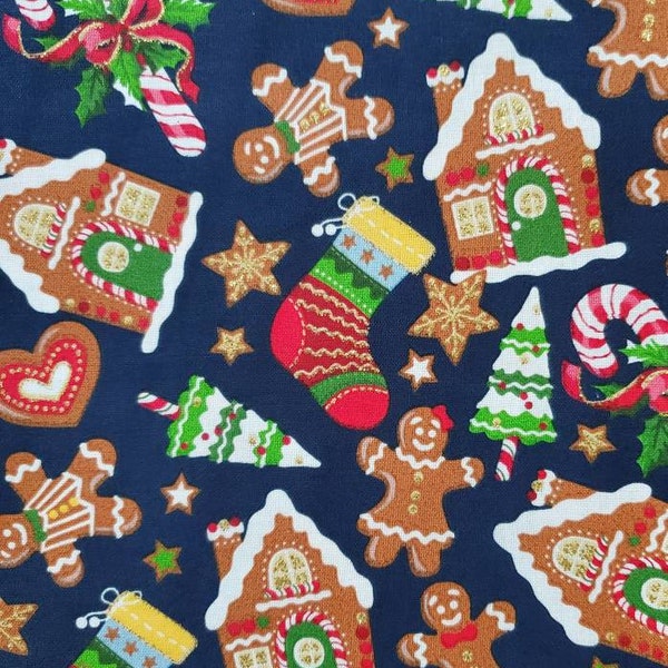 Polycotton Fabric Gingerbread Christmas Candy Canes Xmas Pudding Tree