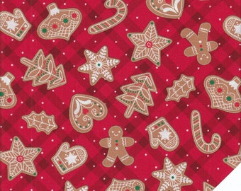 Gingerbread Christmas Fabric, Red Snowflake, Snow Sweet, Treats Goodies ...