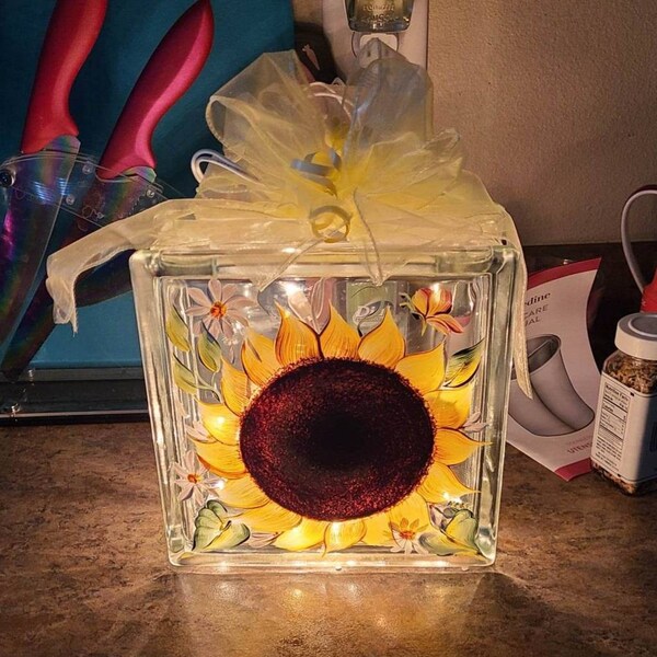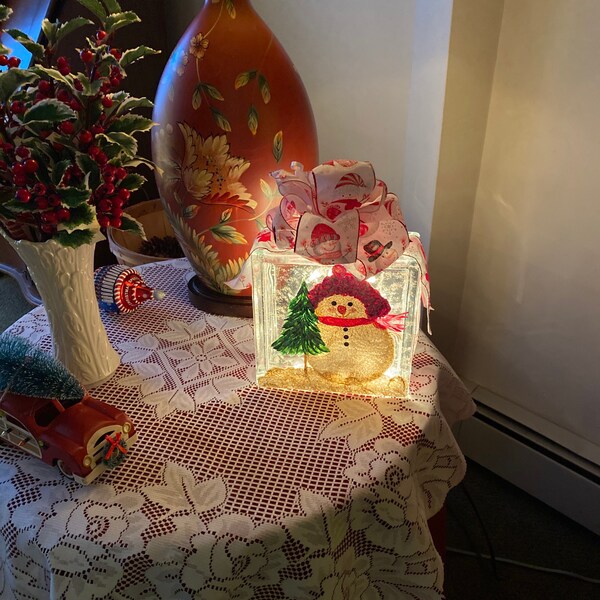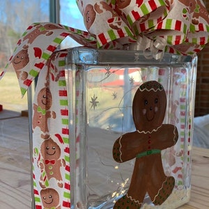 Hand Painted Gingerbread Glass Block Light, Signed, With Strand of 20 ...