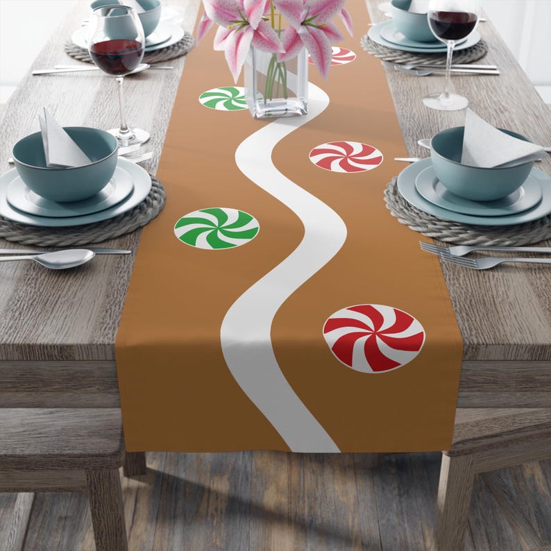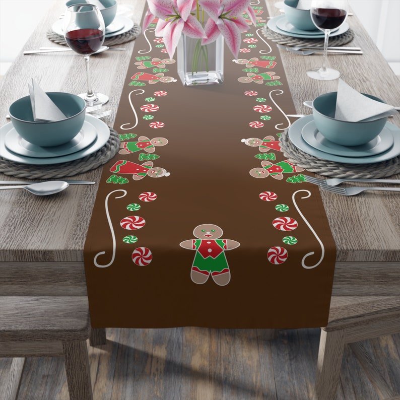 Gingerbread Table Runner, Christmas Table Runner, Gingerbread Dining ...