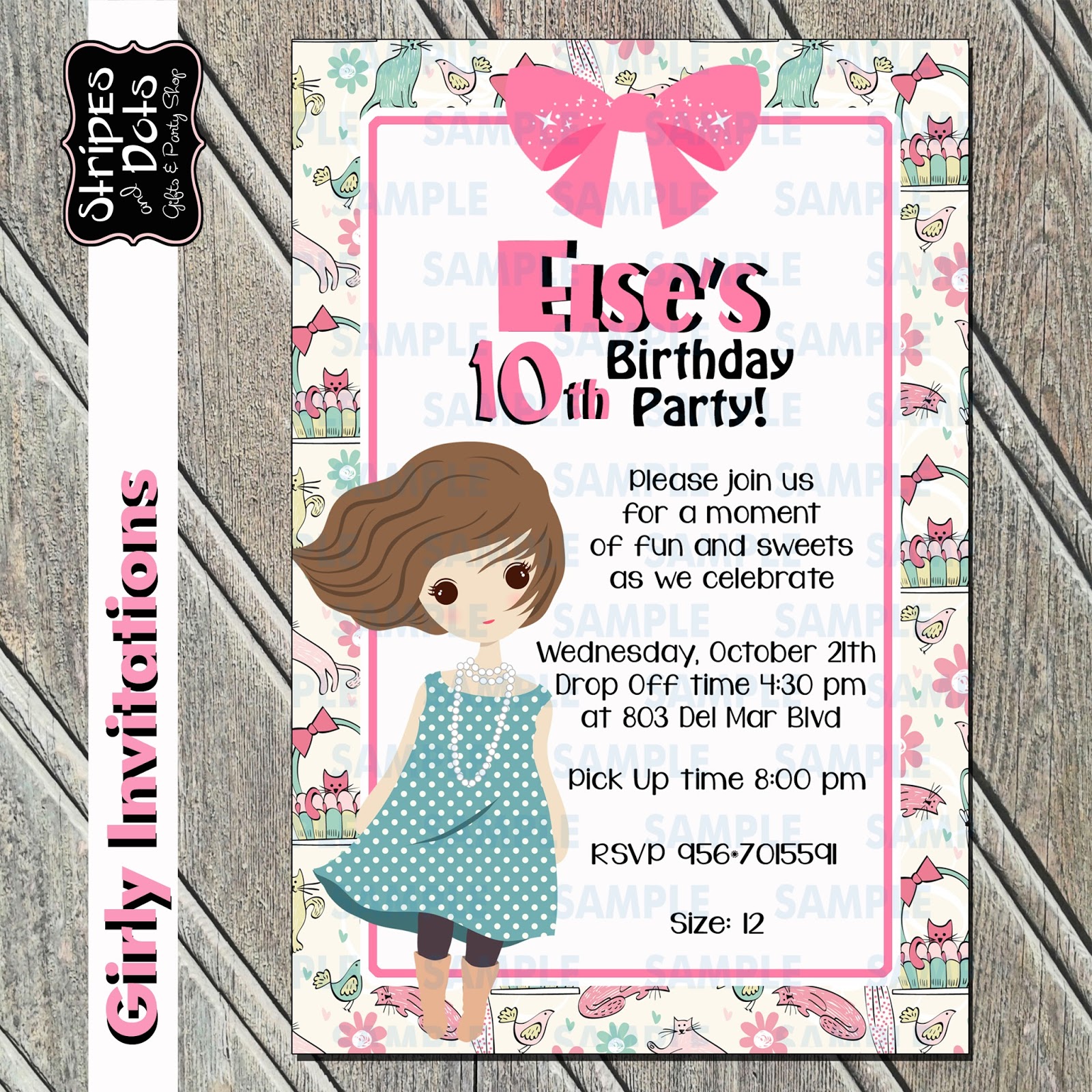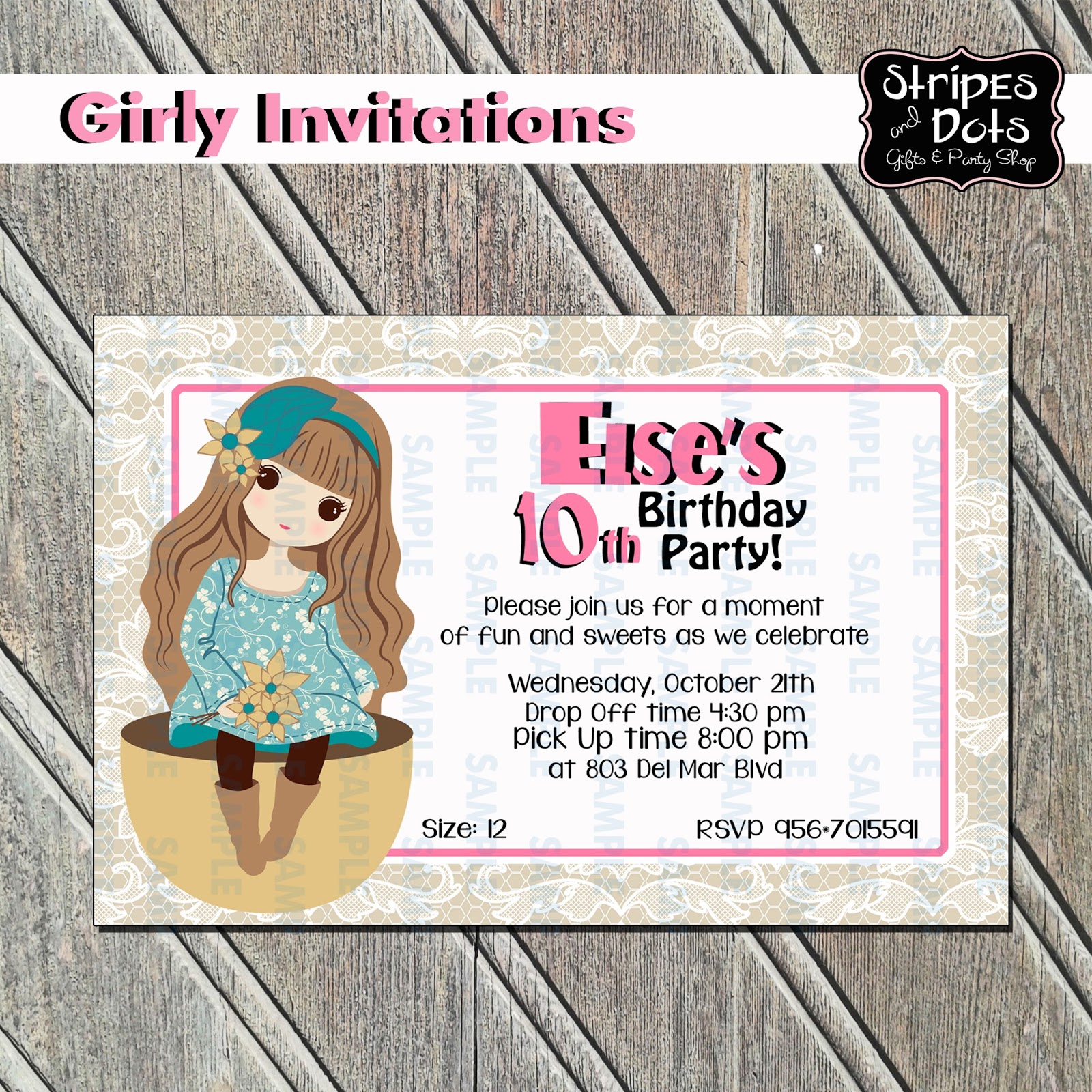 Girly Birthday Party Invitation Custom Digital Download Printable 5x7 ...