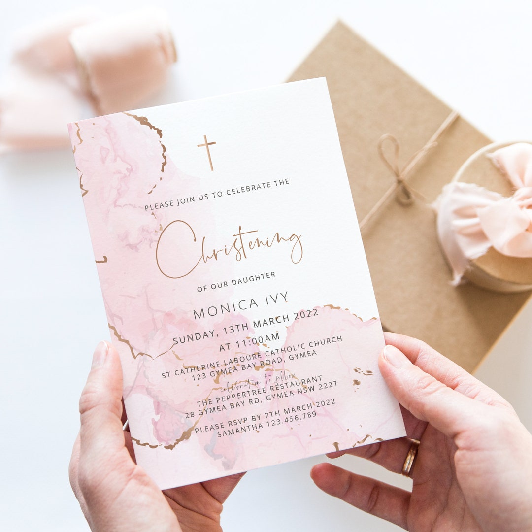 Pink Girl Baptism Invitation, Watercolor Baptism Invitation, Printable ...
