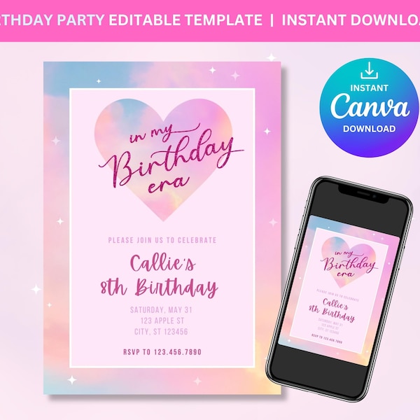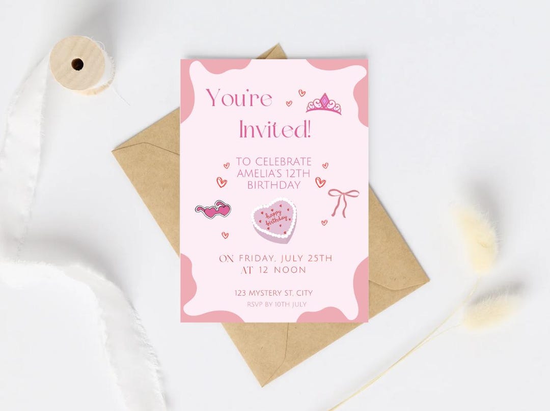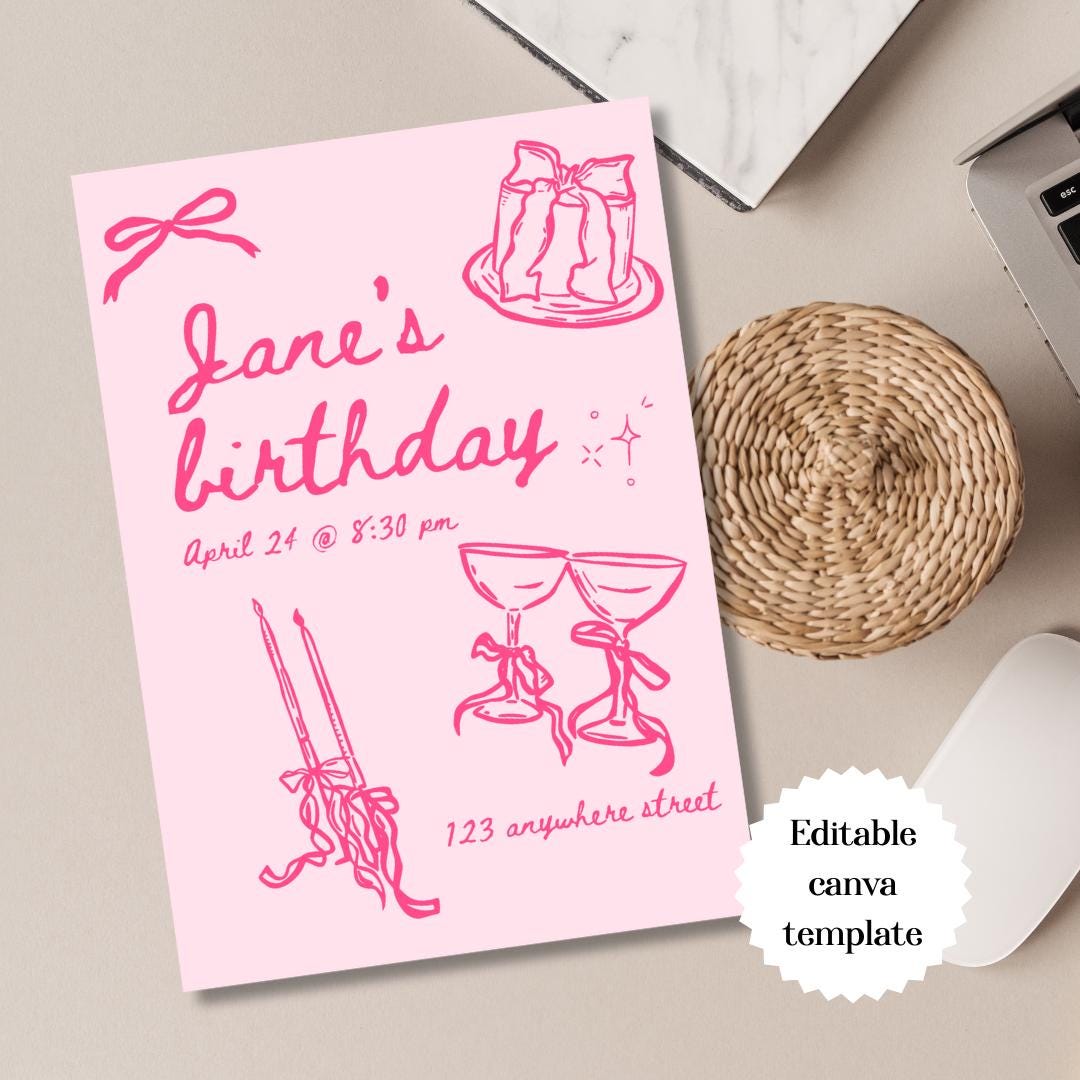 Girly Birthday Invitation Template | Pink Aesthetic Editable Canva Design