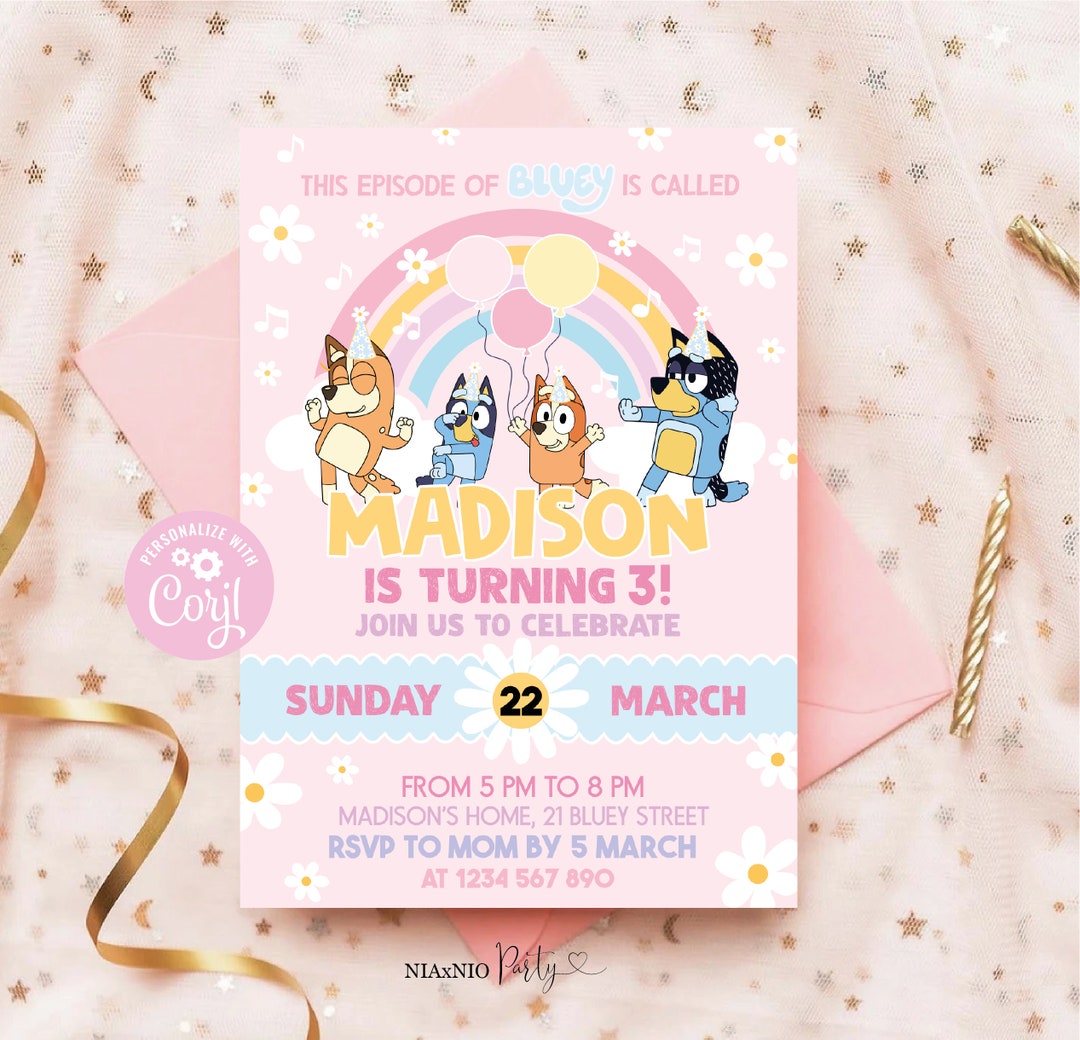 Girl Bluey Birthday Invitation Bluey Invitation Template Bluey ...
