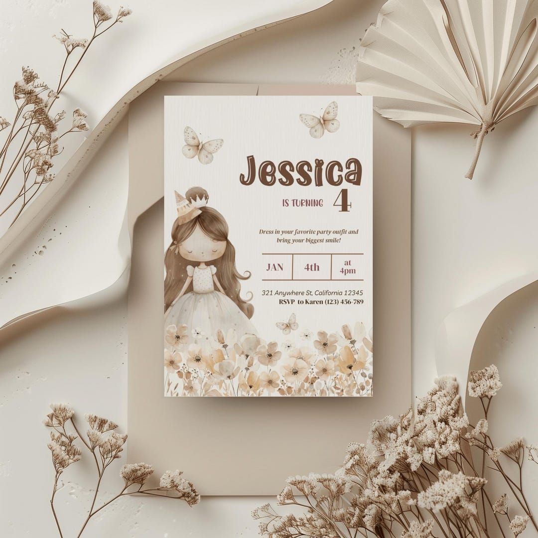 Editable Birthday Girl Invitation Princess Canva Templates Cute Theme ...
