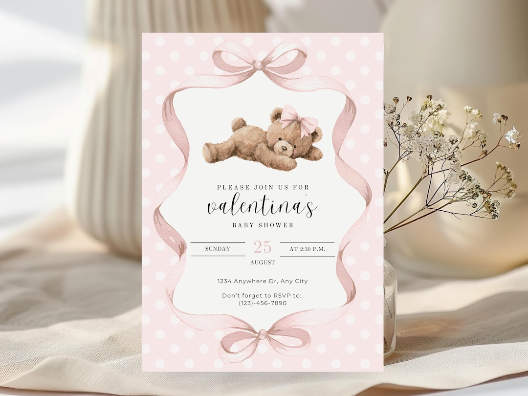Pink Bow Girly Invitation Template | Canva Template, Bow Theme ...