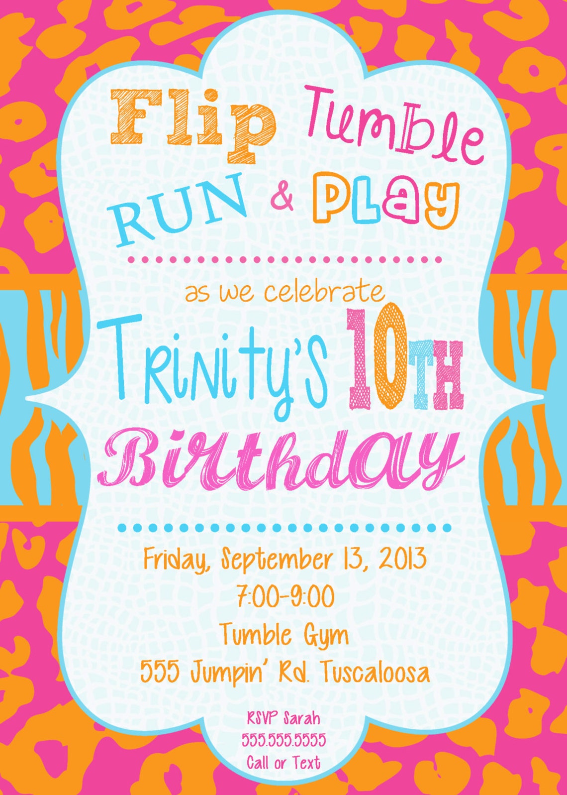 Girly Invitation Older Girl Party Invitation Bright Colors Birthday ...