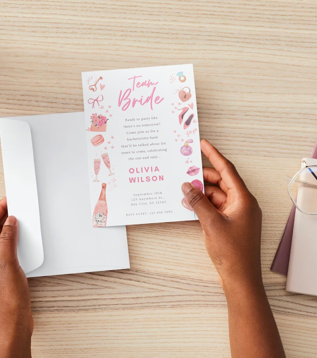 Editable - Team Bride - Pink Bachelorette Invitation - Bridal Shower ...