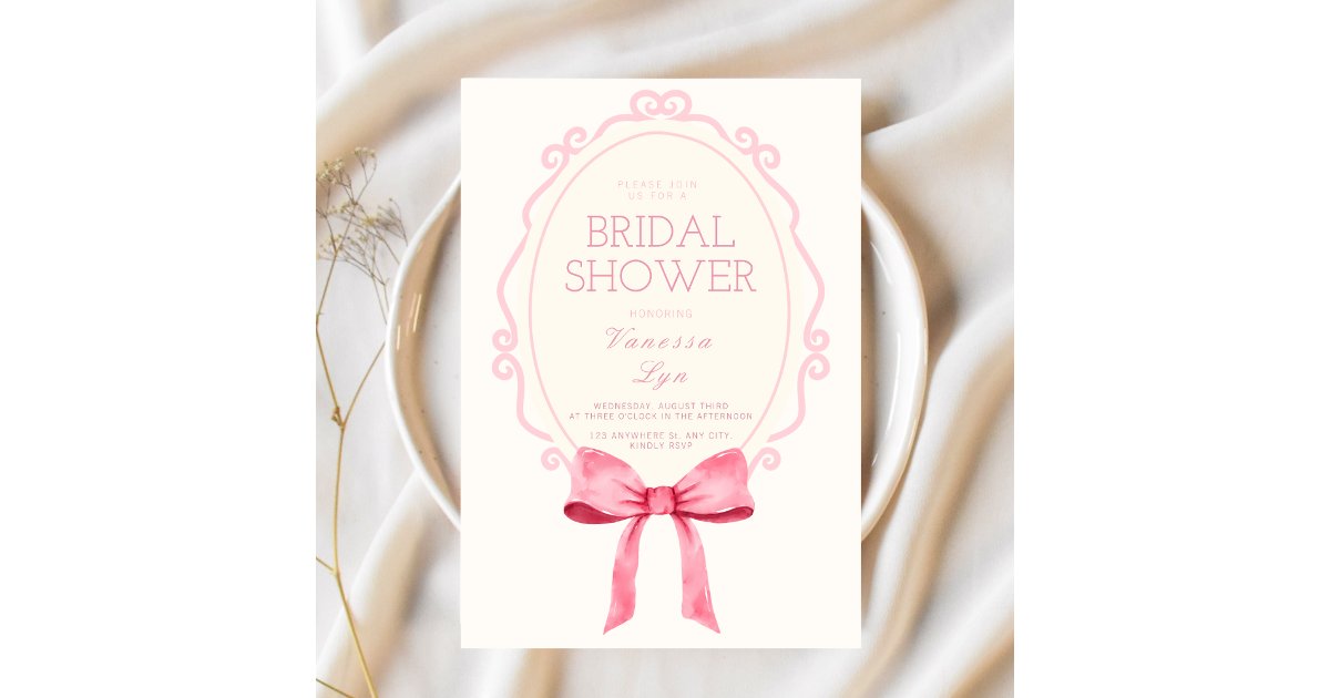 Coquette Pink Bow Bridal Shower Girly Invitation | Zazzle