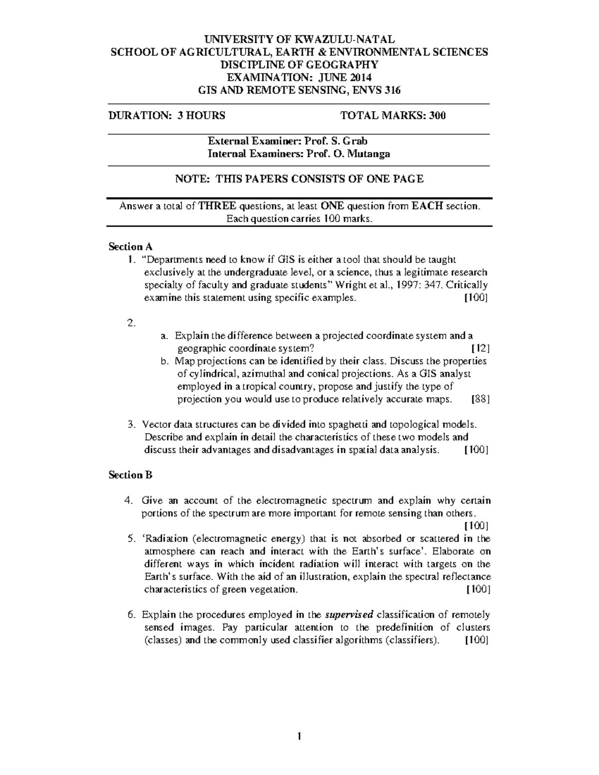 GEOG-PMB-ENVS 316 Final Exam: GIS & Remote Sensing Analysis 2014 - Studocu
