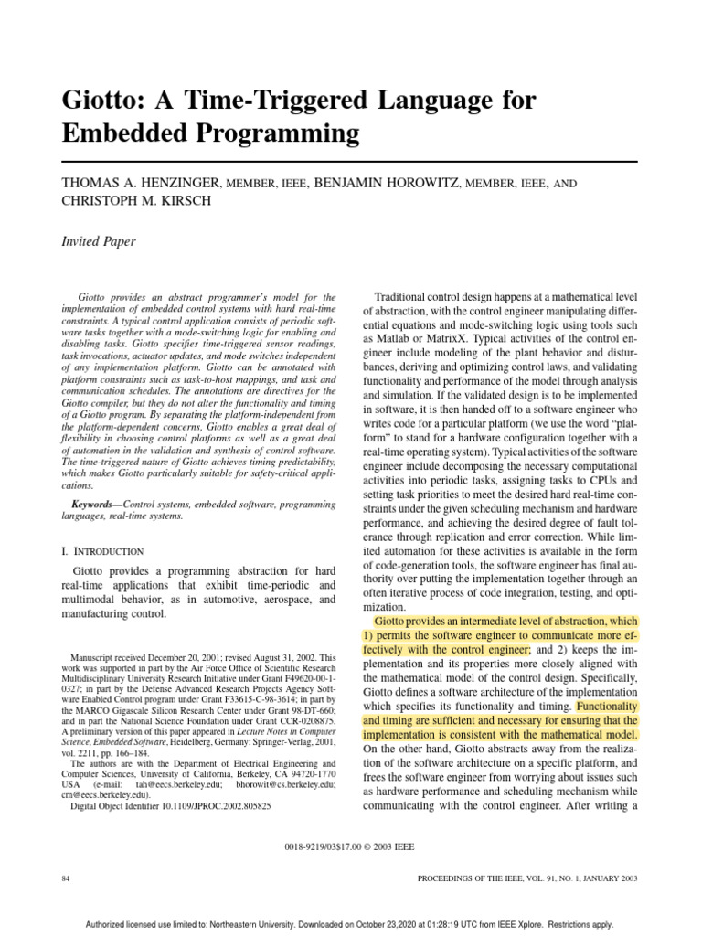 Giotto: Time-Triggered Embedded Language | PDF | Computer Programming ...