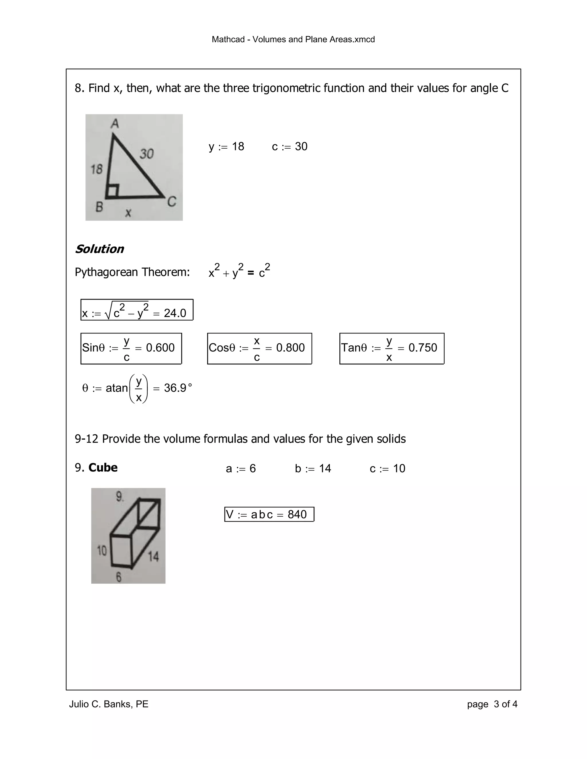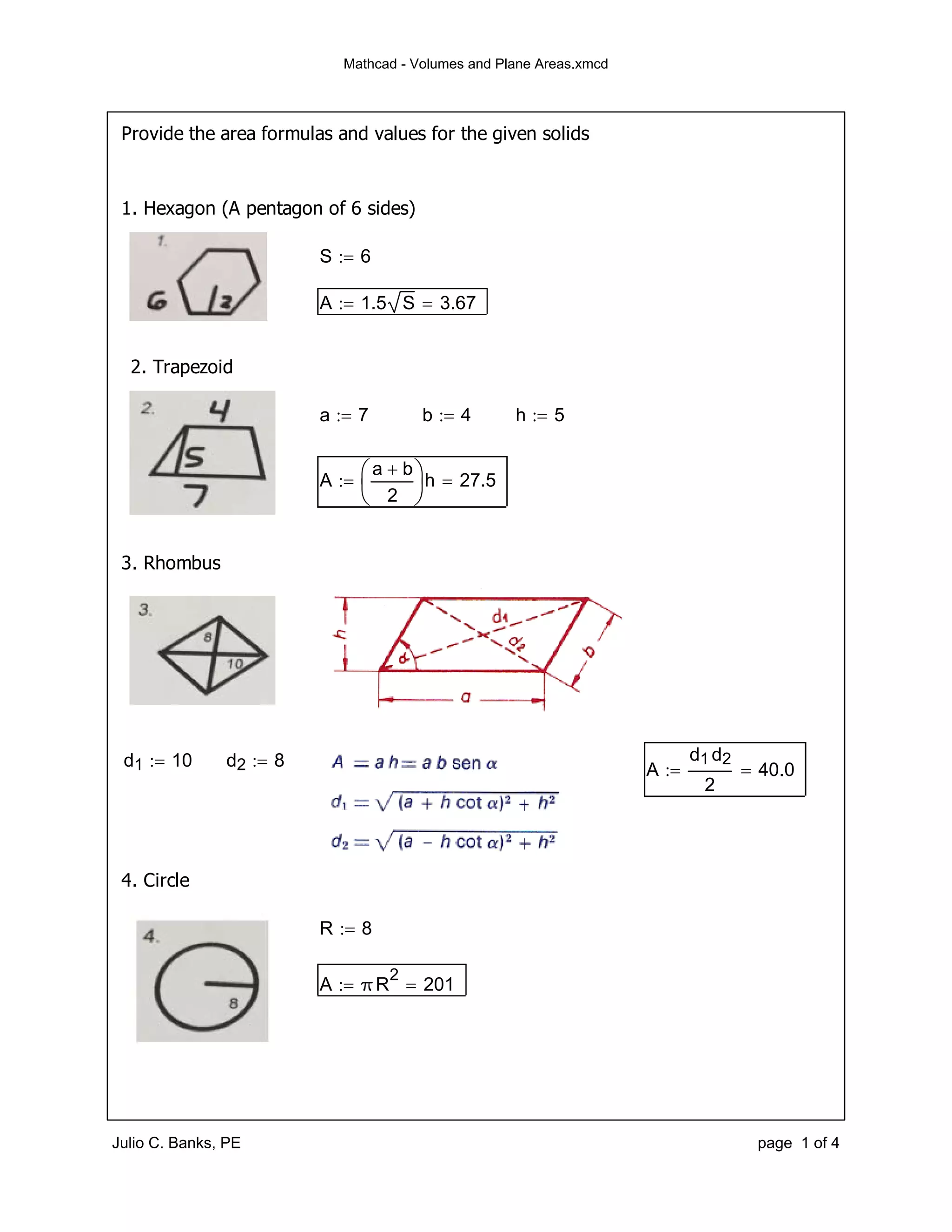 Mathcad volumes and plane areas | PDF