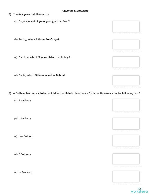 Algebraic Expressions Worksheets | Grade1to6.com - Worksheets Library