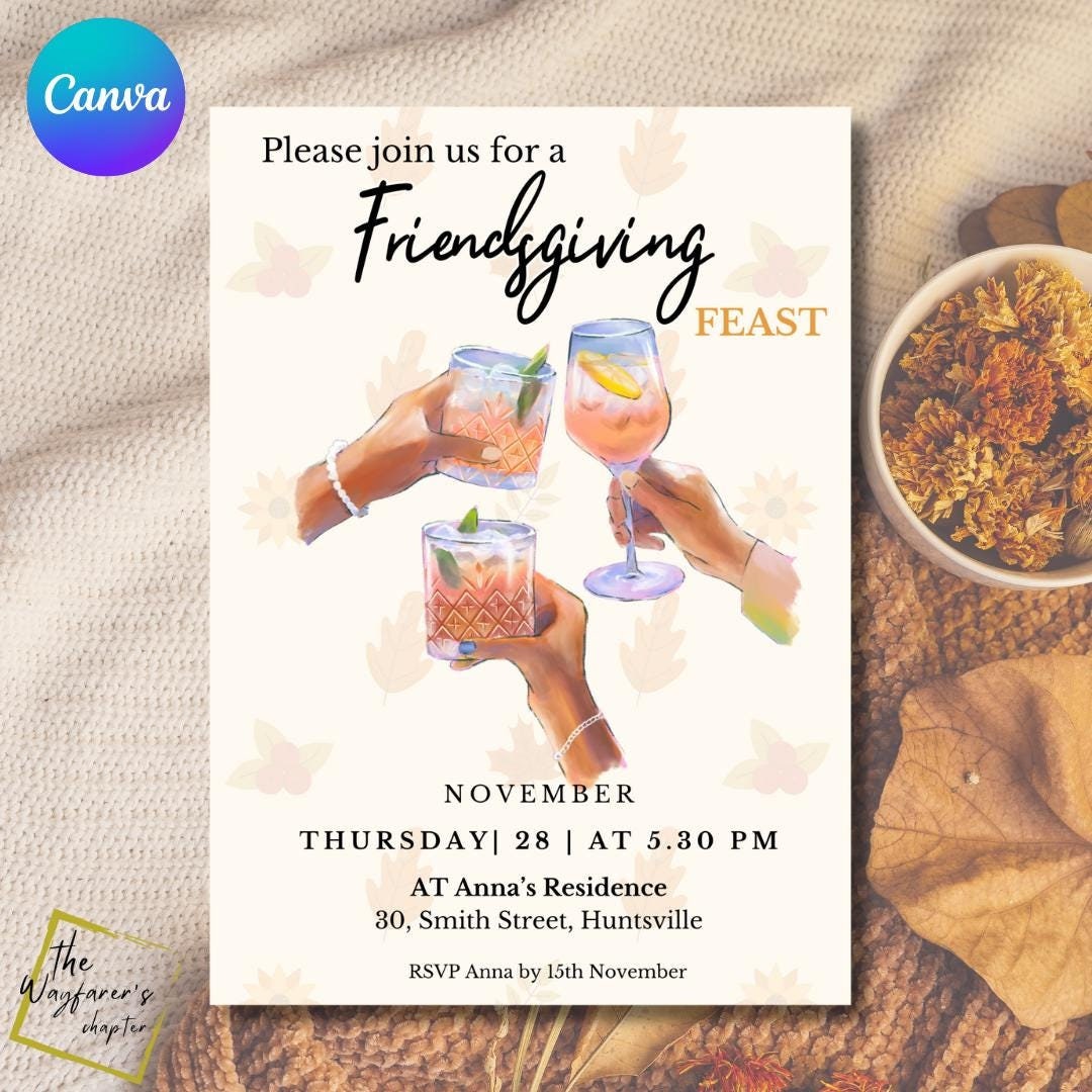Friendsgiving - Party Invitation Canva Template - Digital Download - Etsy