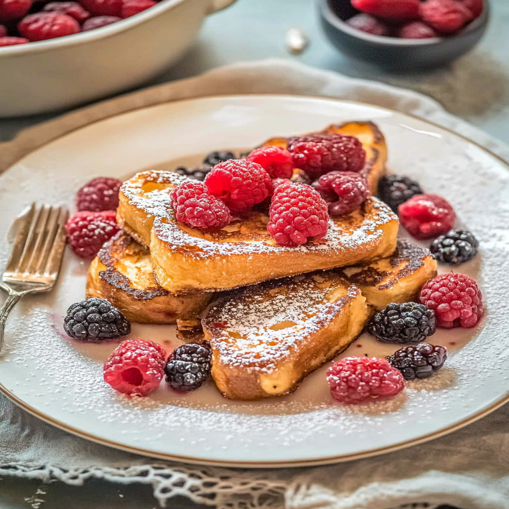 Friendsgiving Raspberry & Mascarpone French Toast with Powdered Sugar