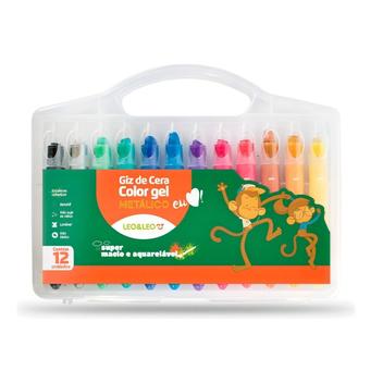 Giz De Cera Color Gel Retratil Estojo 12 Cores Metálico - Leonora - Giz ...