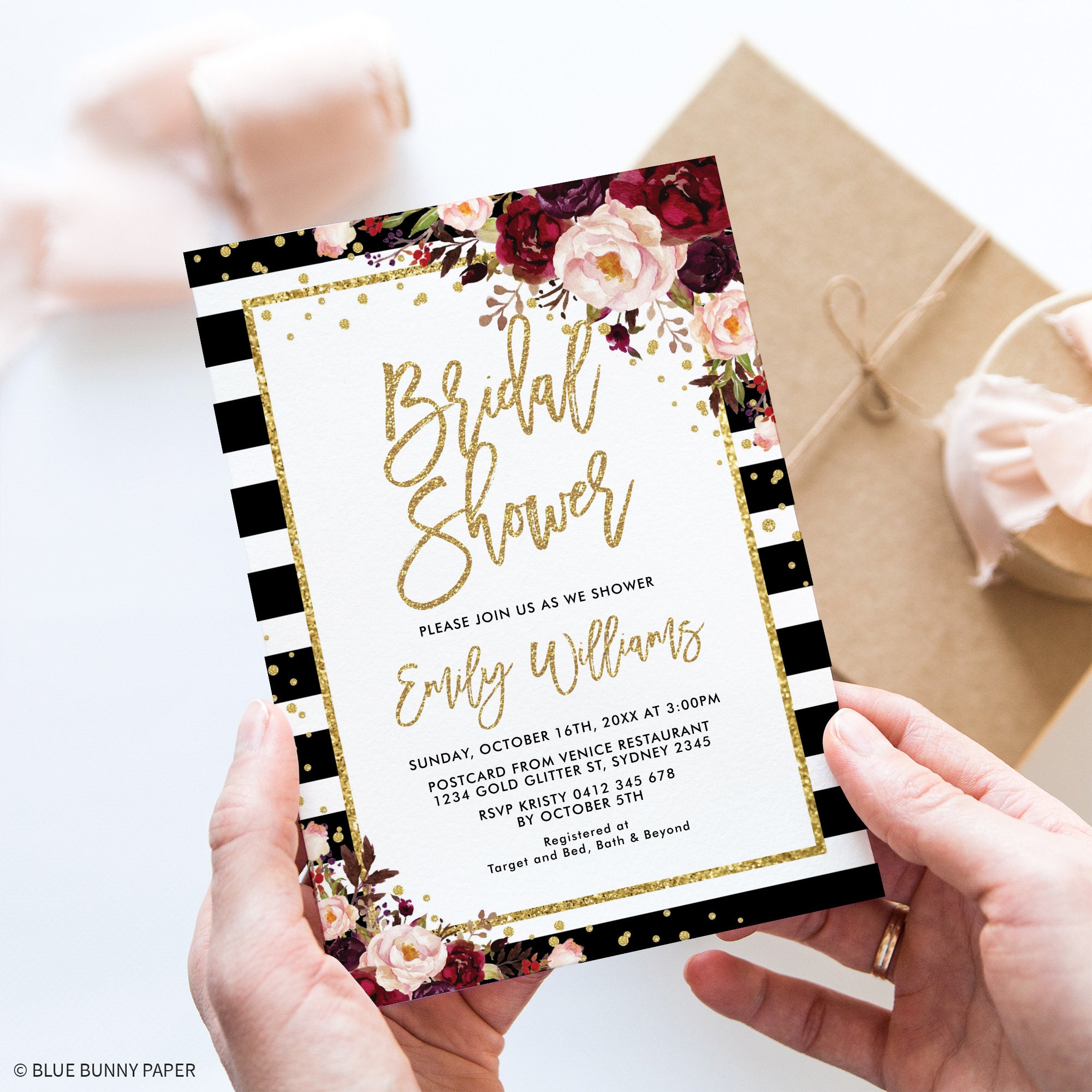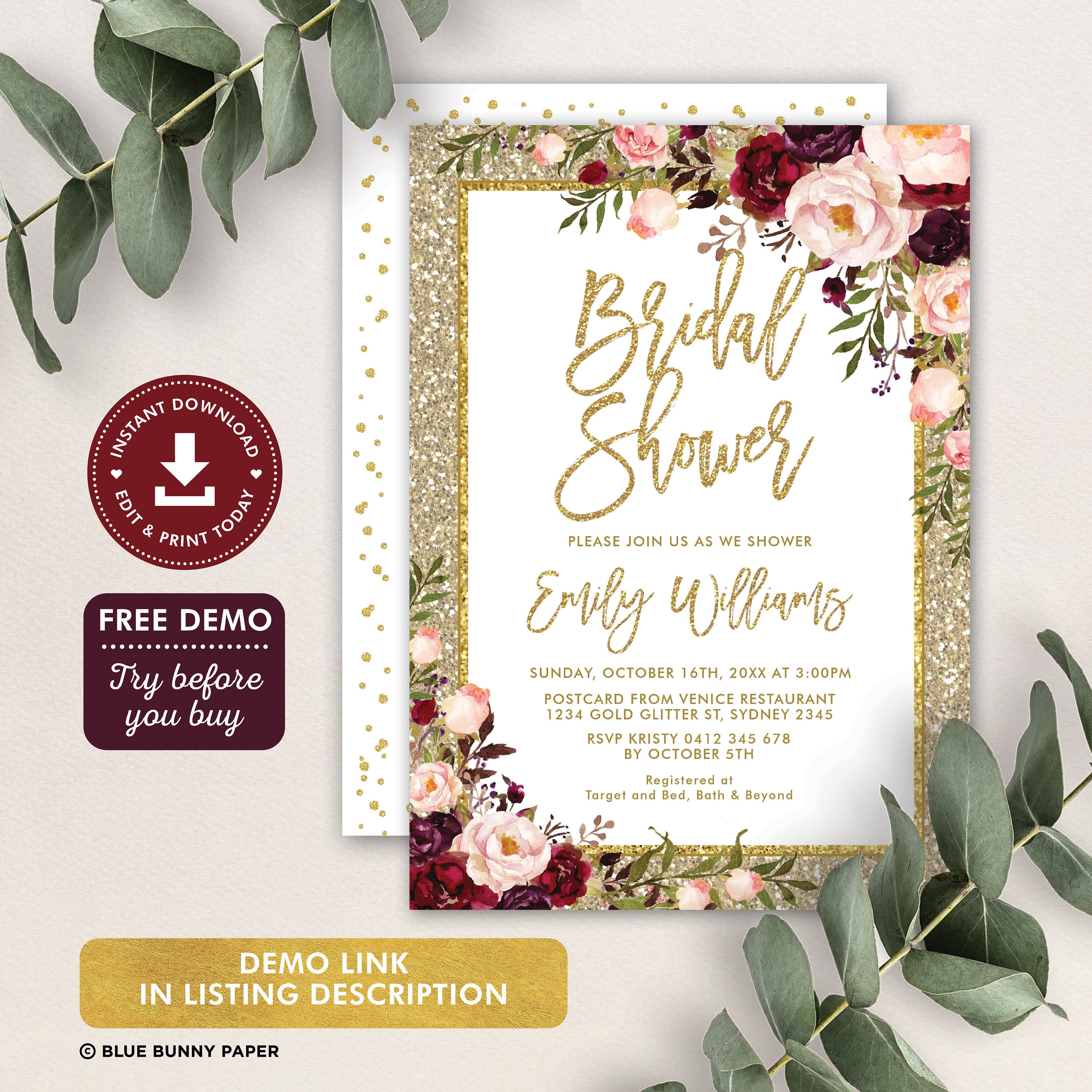 Editable Glitz and Glam Bridal Shower Invitation, Team Bride Wedding ...