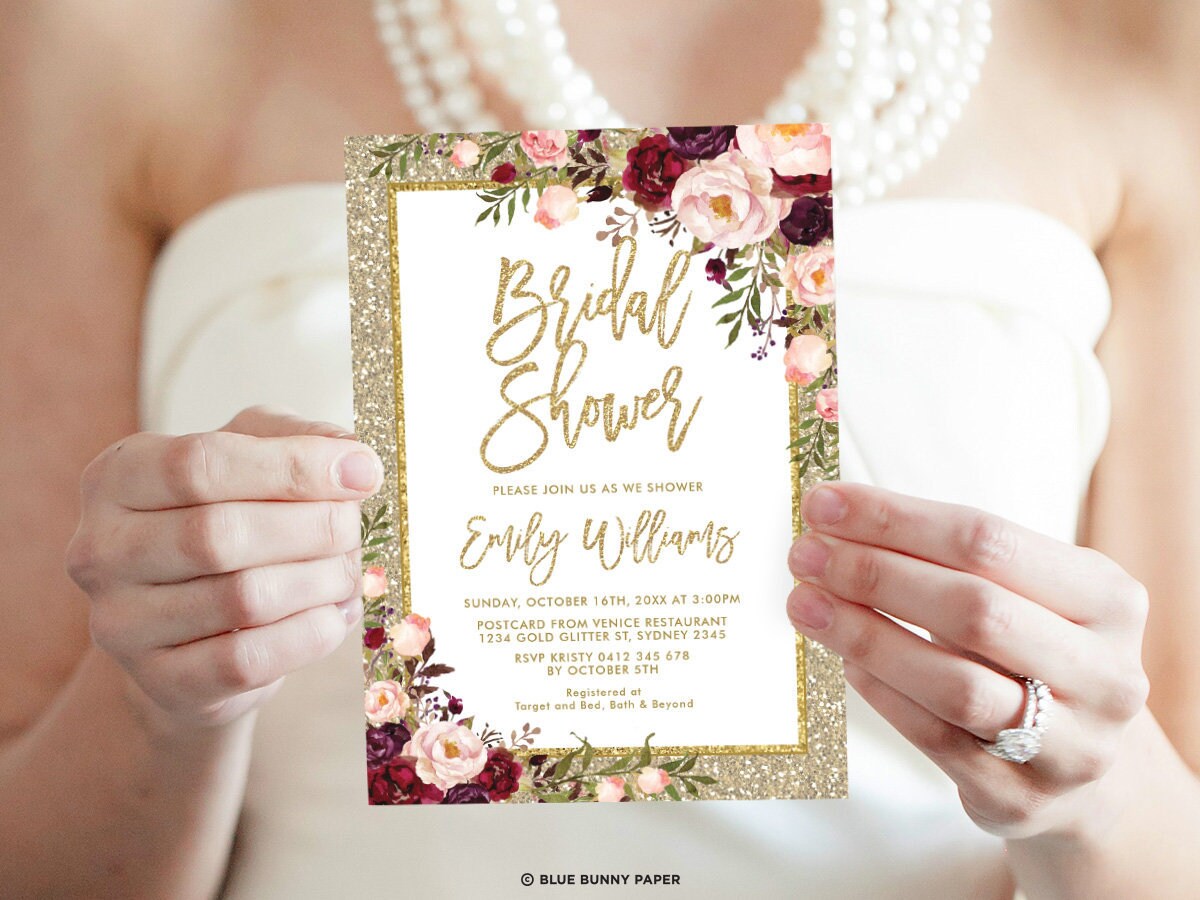Glam Wedding Invitation Gold Glitter Wedding Invite Burgundy - Etsy