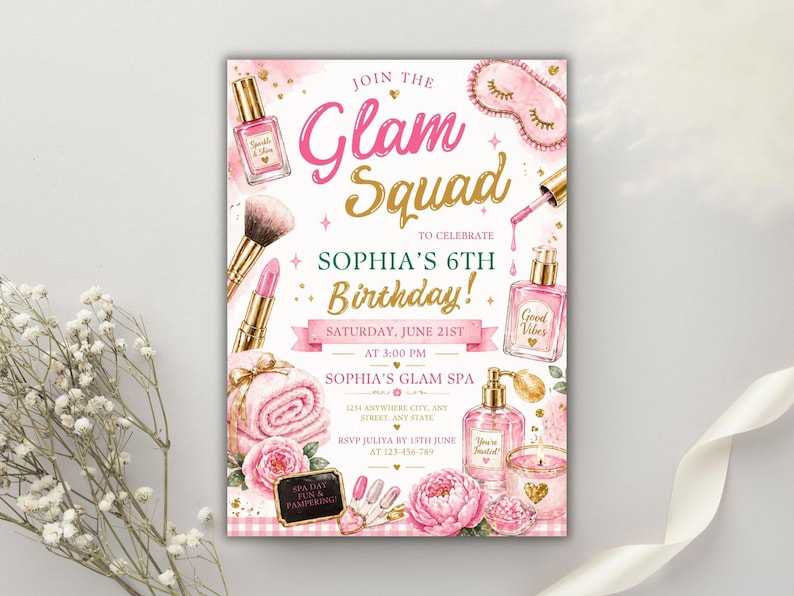 EDITABLE Glitz and Glam Party Invitation Spa Birthday Party - Etsy