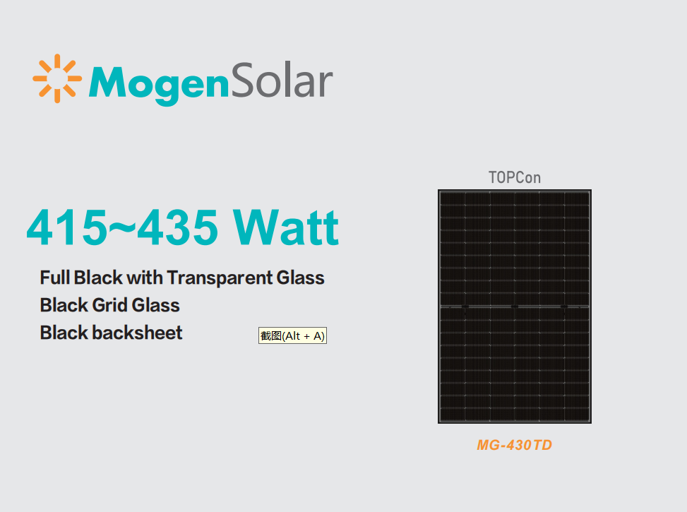 Topcon Glass Glass Transparent All Black Bifacial Double Glass 430W ...