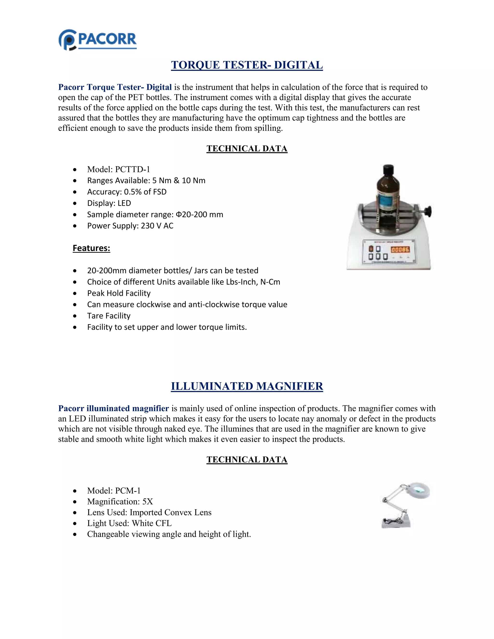 Bottles (pet, preform & glass) testing instruments | PDF