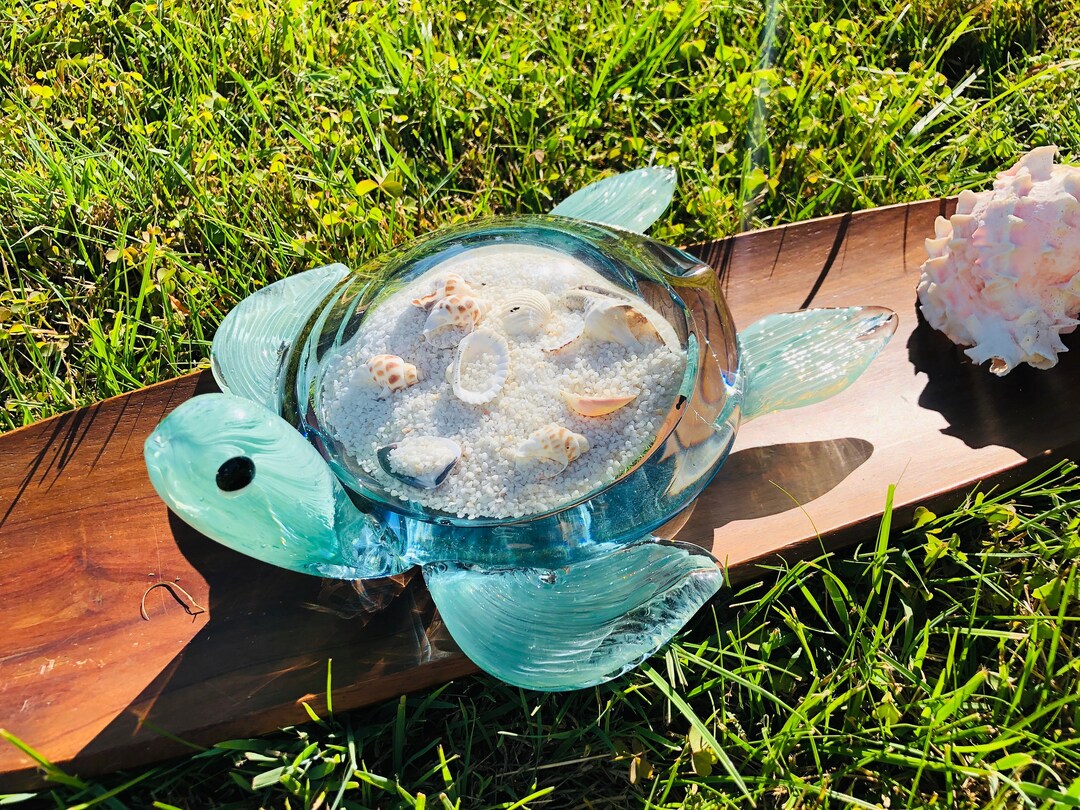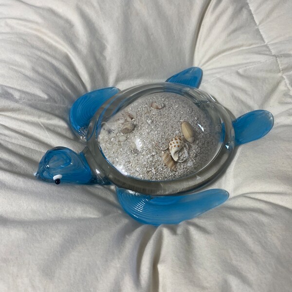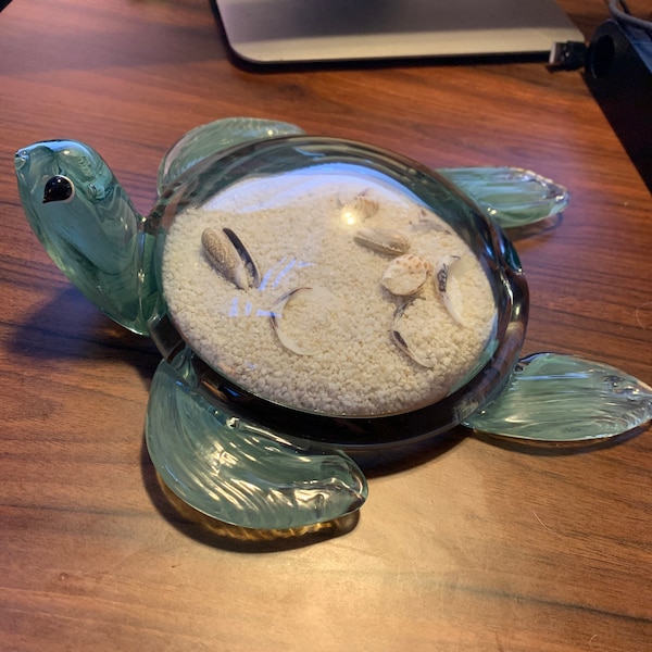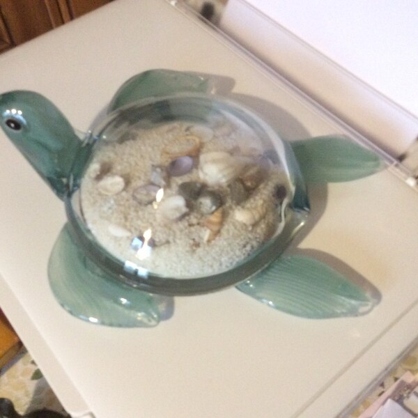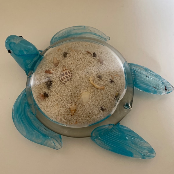 Art Glass Sea Turtle With Sand and Sea Shell - Etsy
