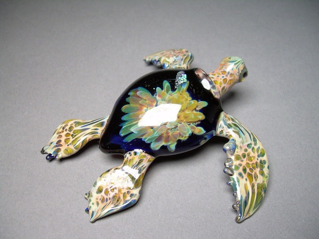 Lampwork Glass Sea Turtle With Ocean Shell Sculpture/pendant - Etsy