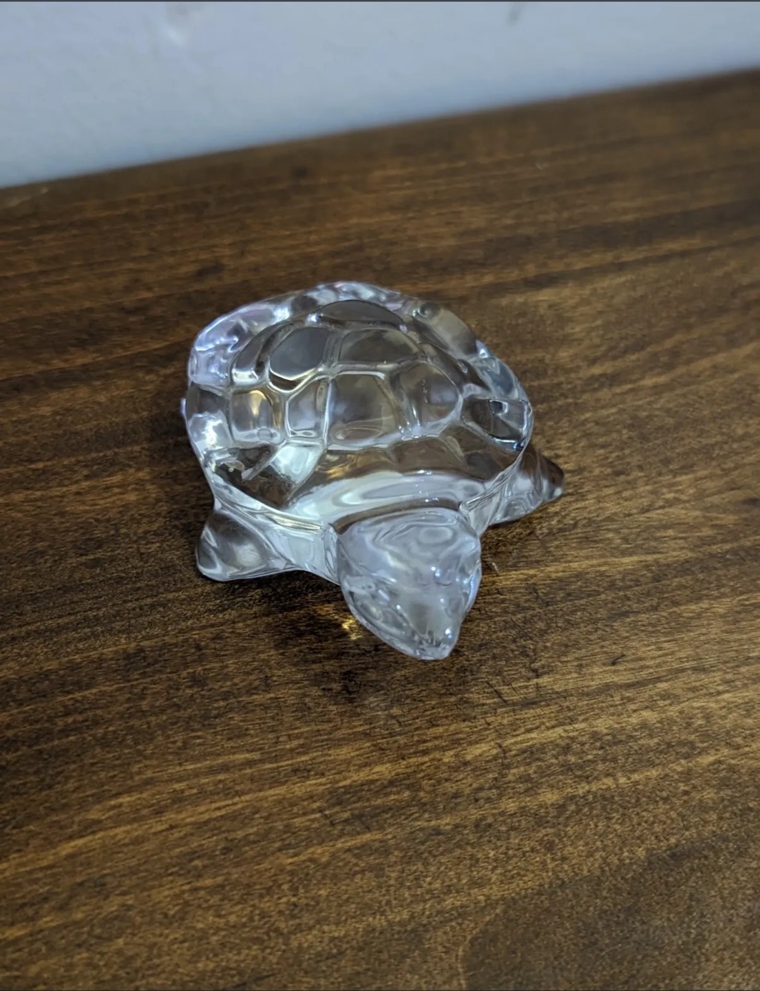 Vintage Crystal Clear Art Glass Turtle Paperweight
