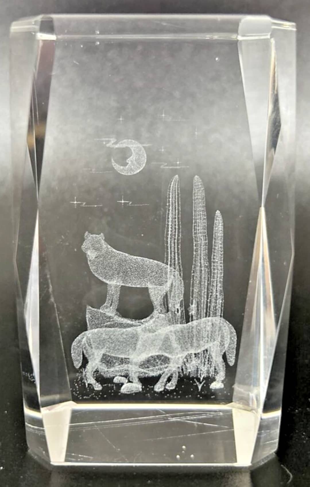 Vintage 3D Etched Glass Wolves Desert Scene Art Paperweight Cube SKU ...