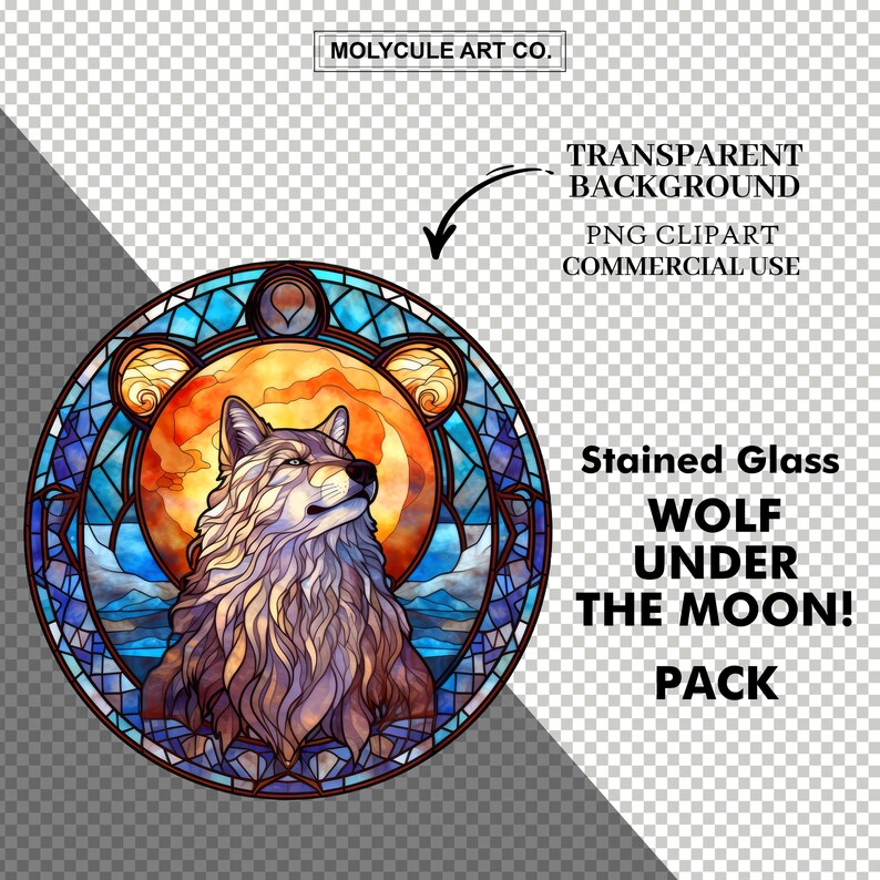 25 Stained Glass Wolf Under the Moon, Digital Downloads, Wolf Clipart ...