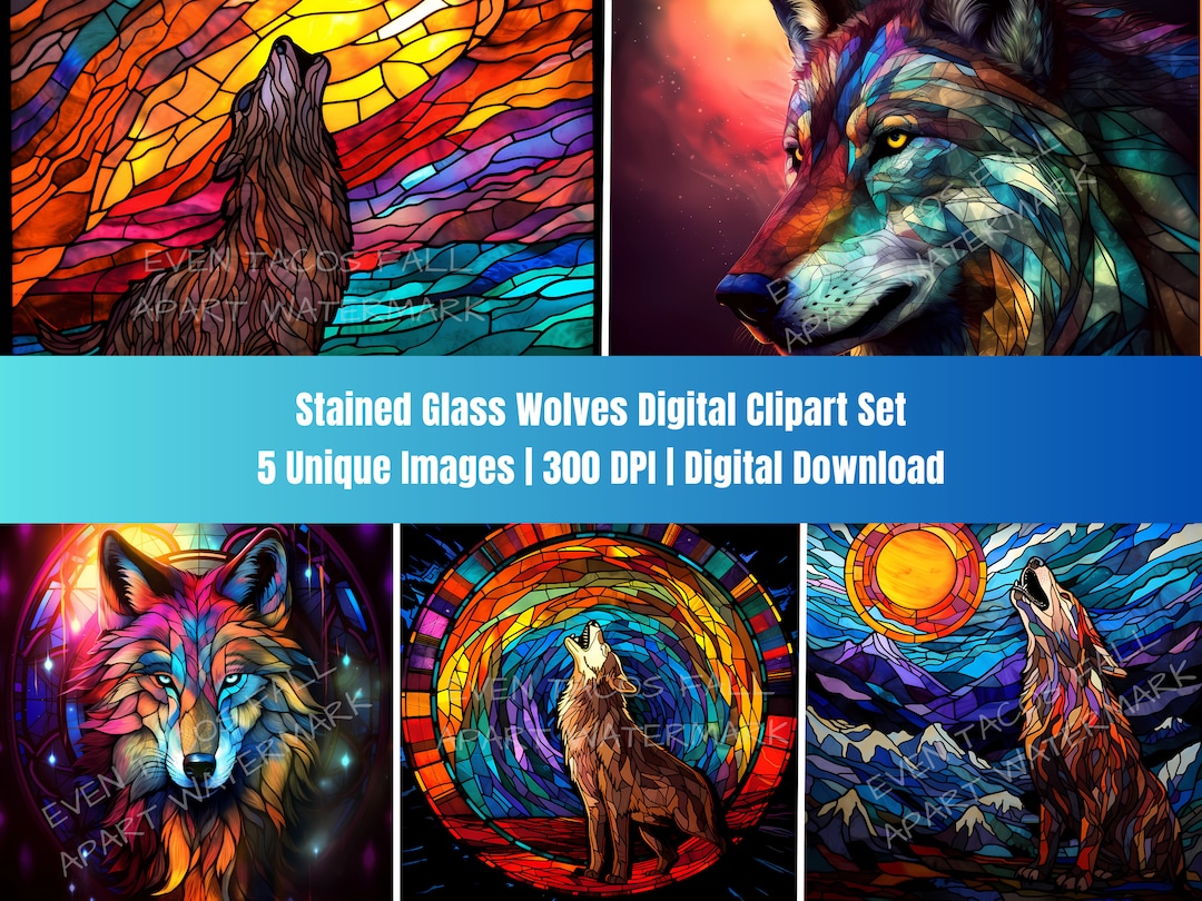 Stained Glass Wolves Artwork Set | Digital Clipart Download | 300 DPI ...