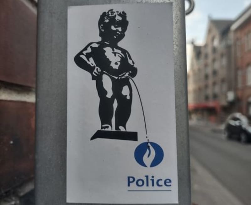 Stickerplakkers laten Manneken Pis op politielogo plassen: politie ...