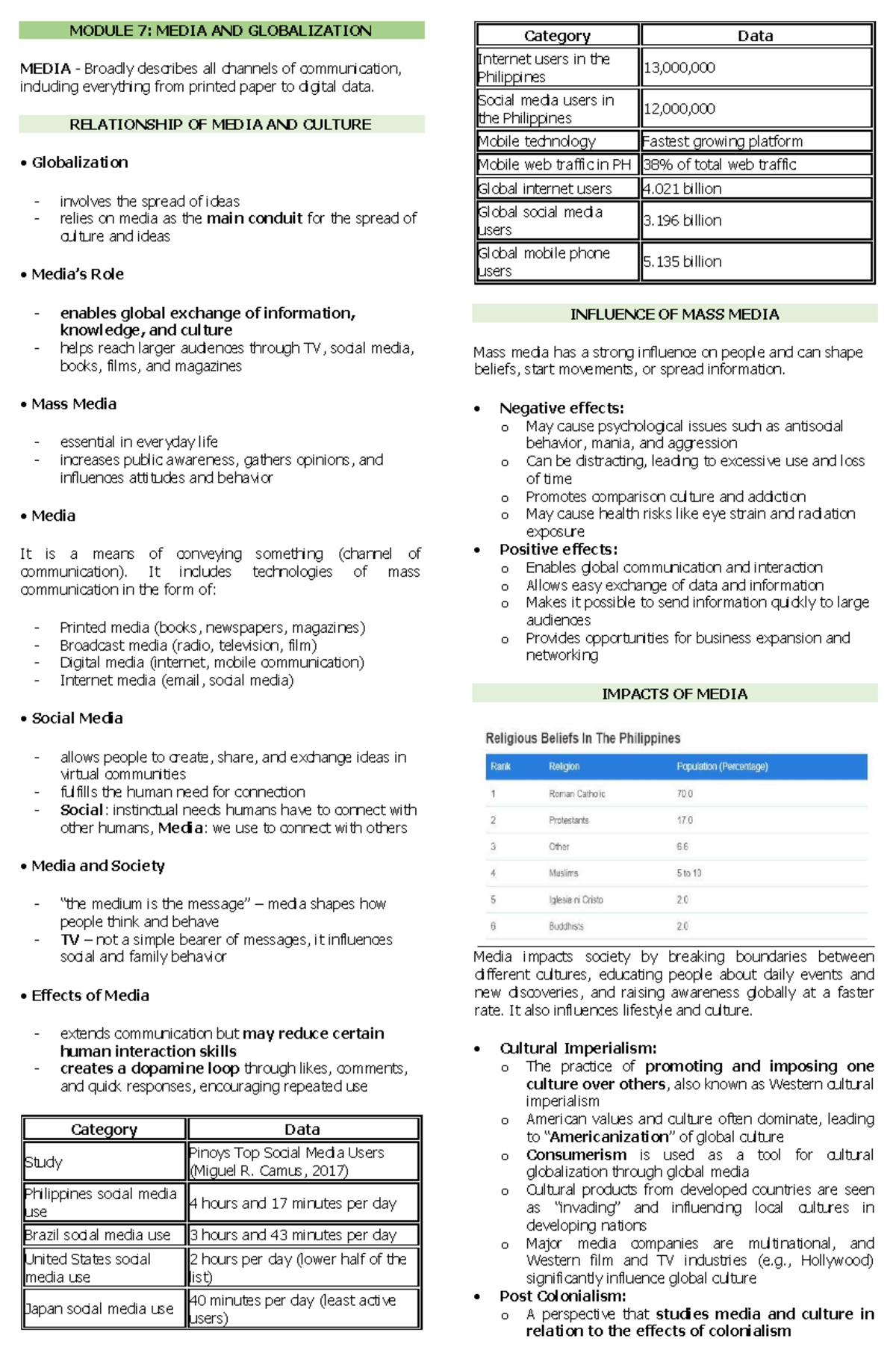 Module 7: Media & Globalization - Impact on Culture & Society - Studocu