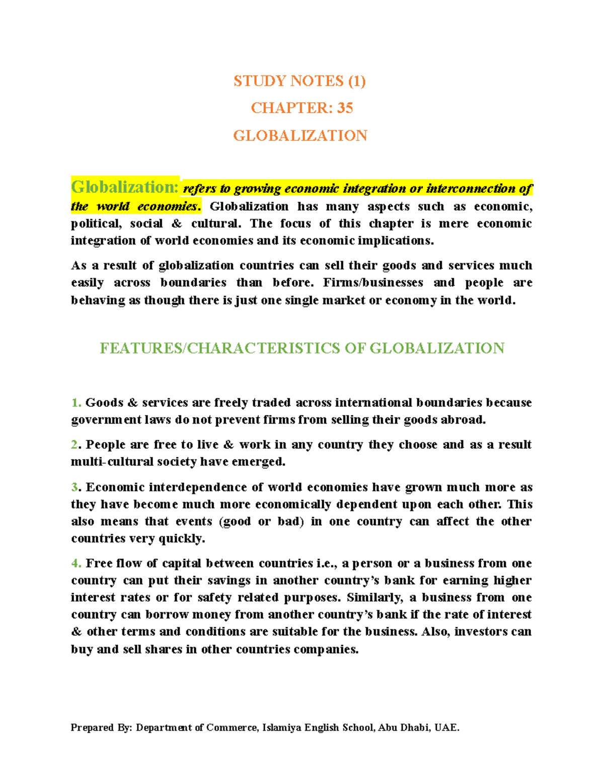Ch. 35 Globalization - STUDY NOTES (1) CHAPTER: 35 GLOBALIZATION ...