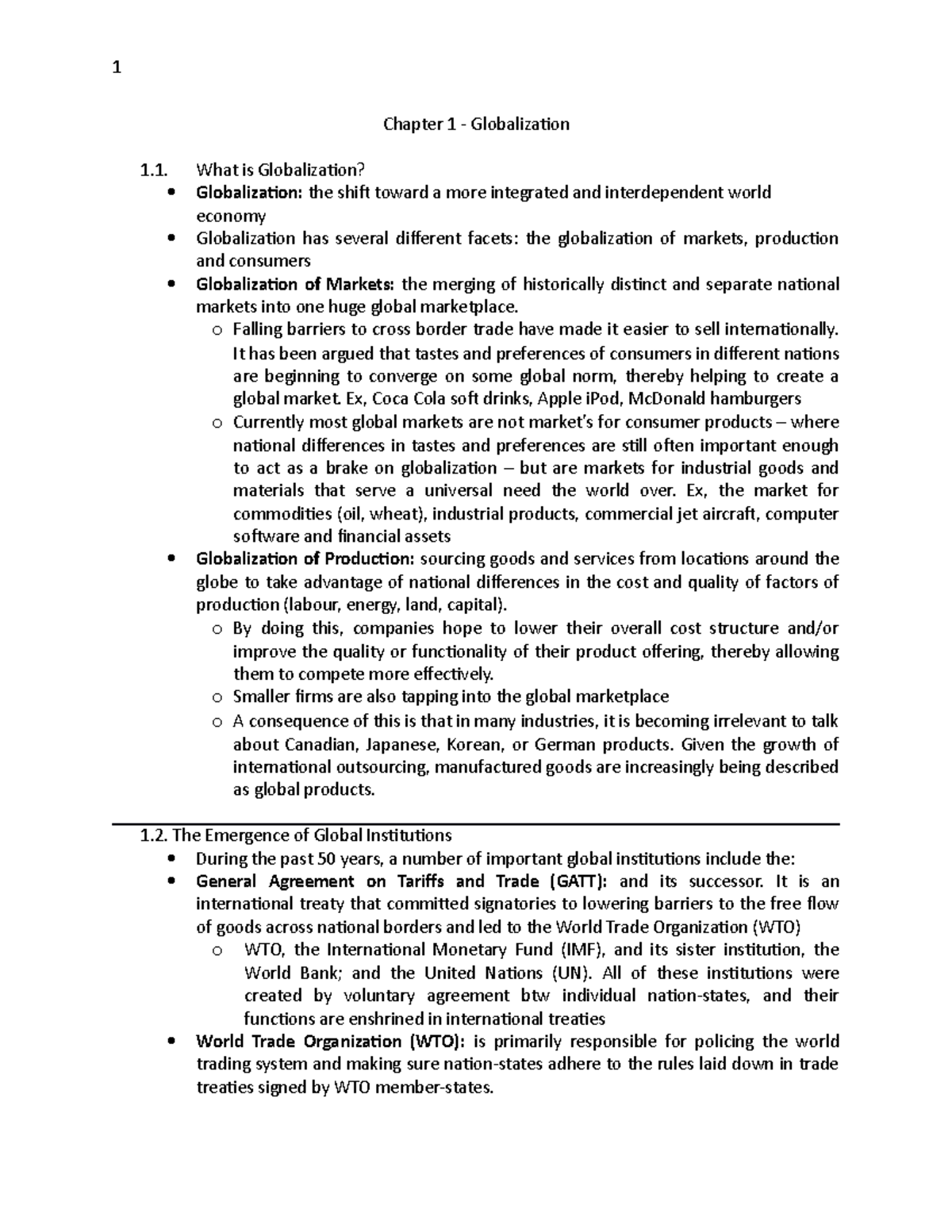 Textbook Notes - International Business - Chapter 1 - Globalization ...