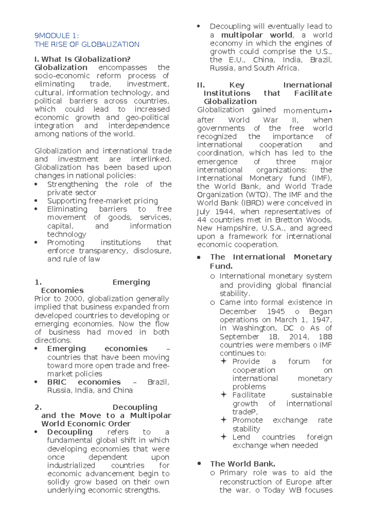 BACC Notes - 9MODULE 1: THE RISE OF GLOBALIZATION I. What Is ...