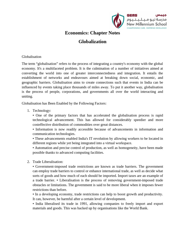SOLUTION: Globalisation notes globalisation revision notes - Studypool