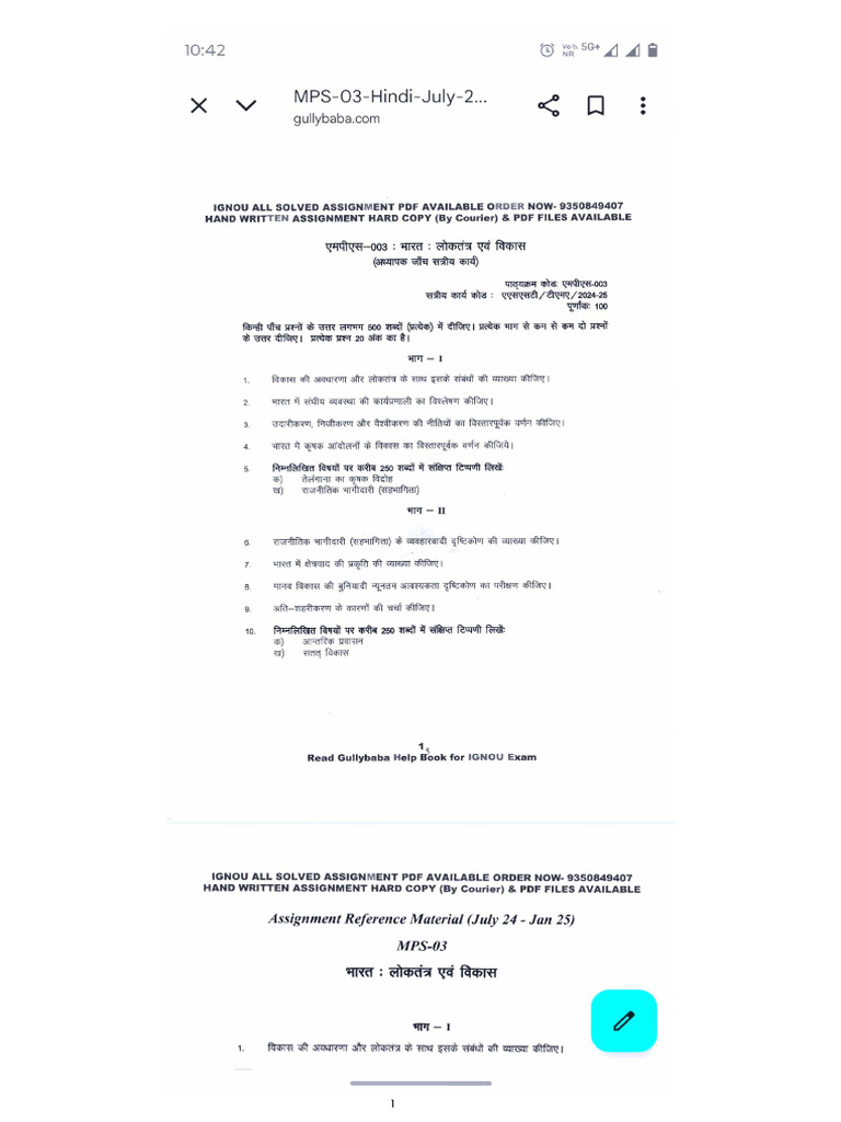 IGNOU MPS 004 Comparative Notes PDF December 2025 in English & Hindi ...