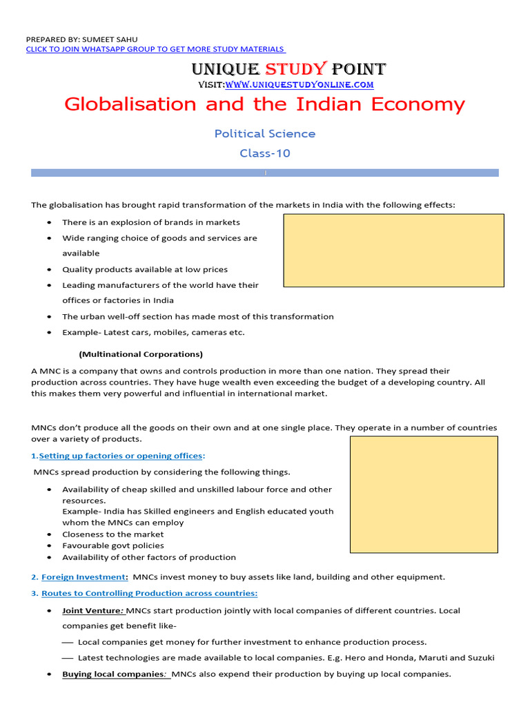 Globalisation and the indian economy notes class 10 | Economics chapter ...