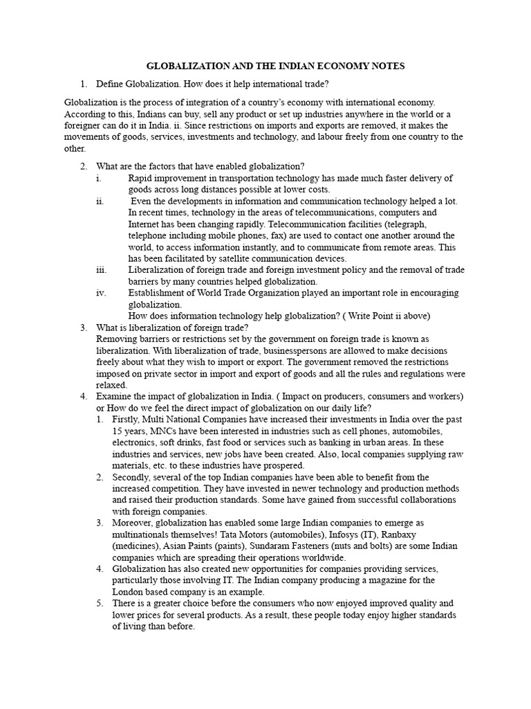 SOLUTION: Class 10th notes globalisation of indian economy - Studypool