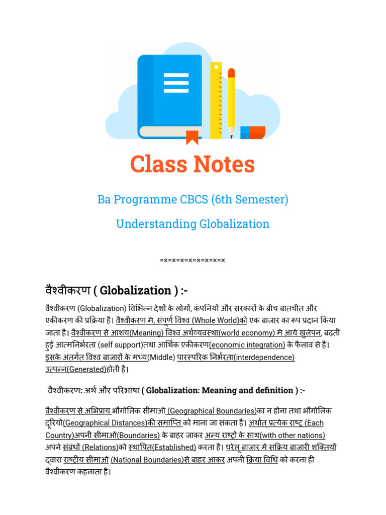 B.A. PROG. DU SOL Semester 6th UNDERSTANDING GLOBALIZATION Notes In ...