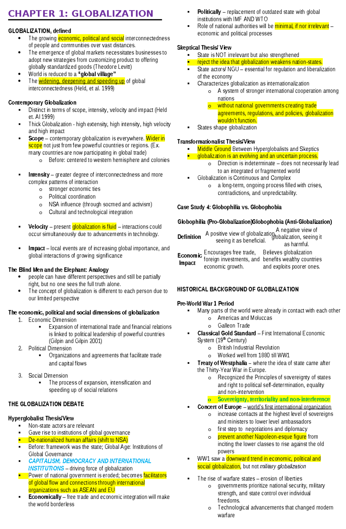 Chapter 1 Globalization: Key Concepts and Debates - Lecture Notes - Studocu