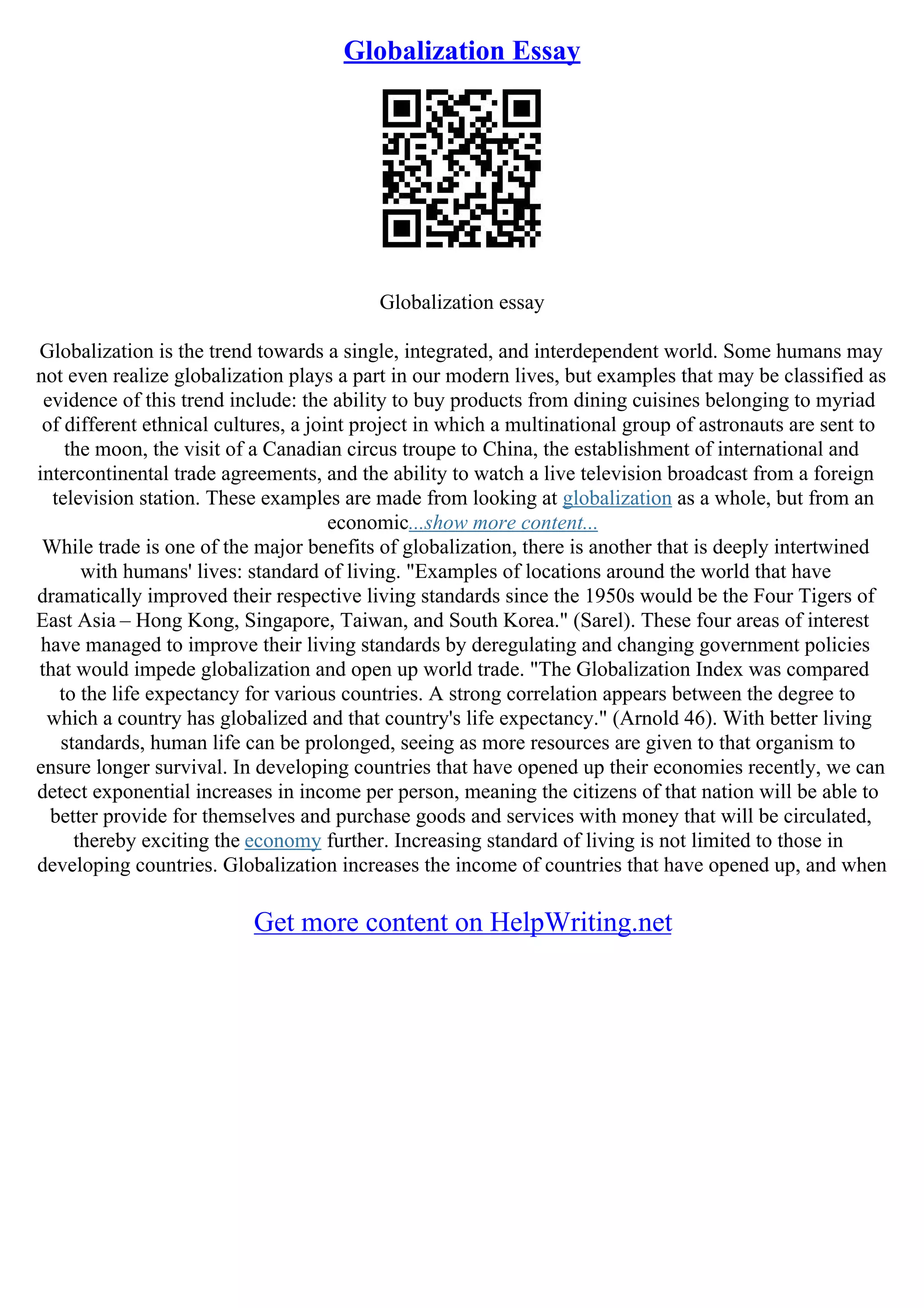 The Globalization Essay | 500 Word Essay | PDF