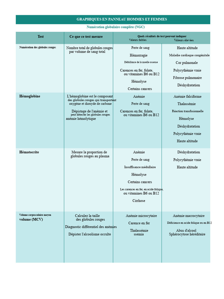 Tableau des valeurs de laboratoire indiquant ce que chaque anomalie ...