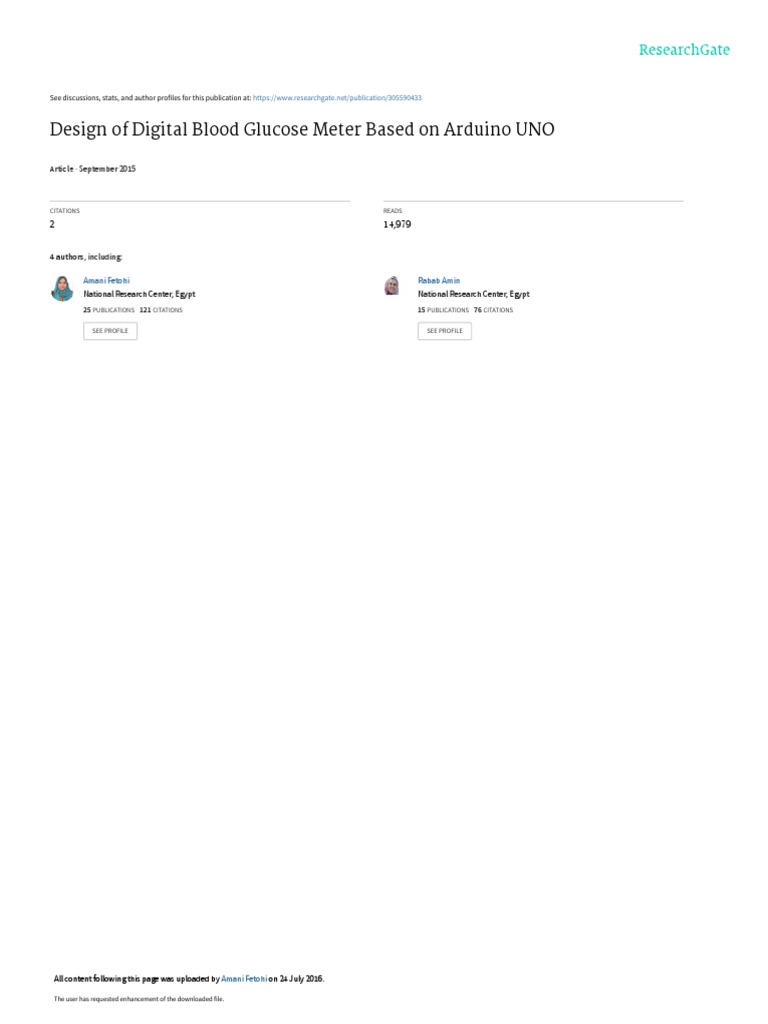 (PDF) Design of Digital Blood Glucose Meter Based on Arduino UNO
