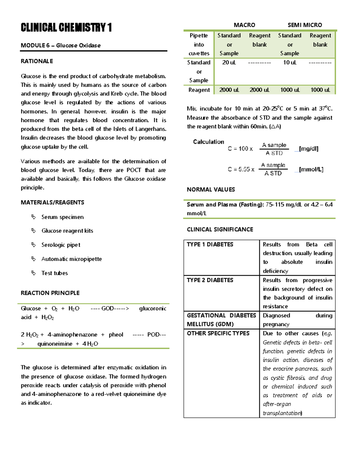 Module 6 - Glucose Oxidase - CLINICAL CHEMISTRY 1 MODULE 6 – Glucose ...