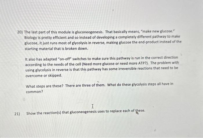Solved 20) The last part of this module is gluconeogenesis. | Chegg.com